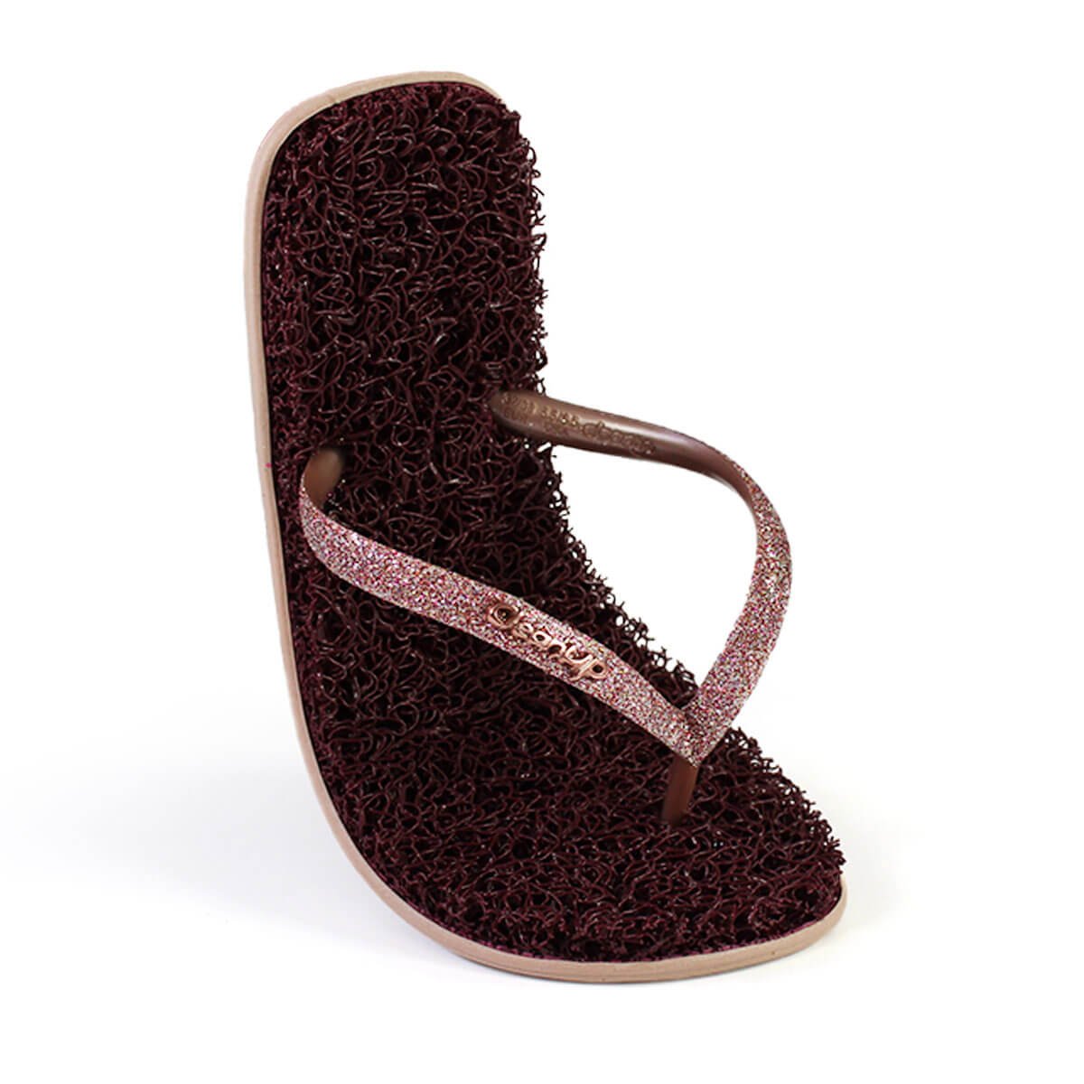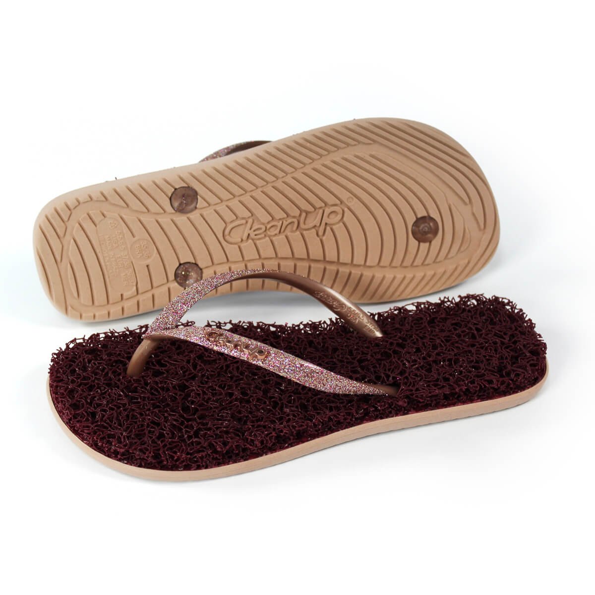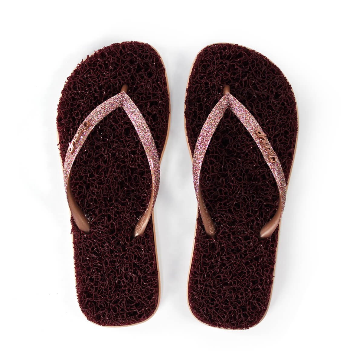 Step into effortless style and comfort with these chic bordeaux flip-flops, featuring soft textured soles for superior cushioning and sparkling pink glitter straps that add a touch of glamour to any casual outfit. Perfect for everyday wear, beach trips, or relaxed outings, these eye-catching sandals are available in multiple sizes to ensure the perfect fit.